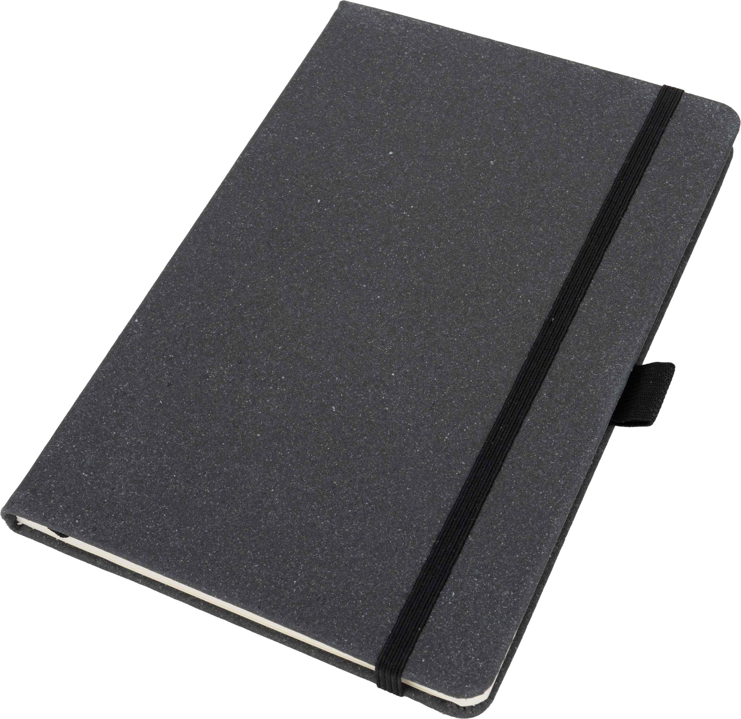 Notes o formacie A5, wykonany ze skóry pochodzącej z recyklingu z zamknięciem na gumkę. Wewnątrz znajduje się 160 kartek w linie.